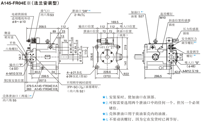A145-FR04E※(法兰安装型)油研柱塞泵安装尺寸图:
