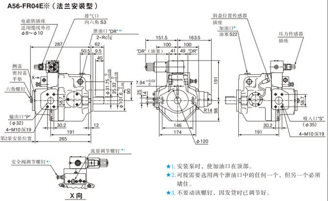A56-FR04E※(法兰安装型)油研柱塞泵安装尺寸: