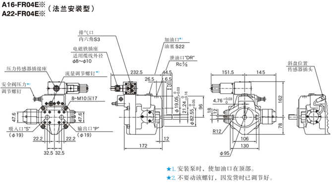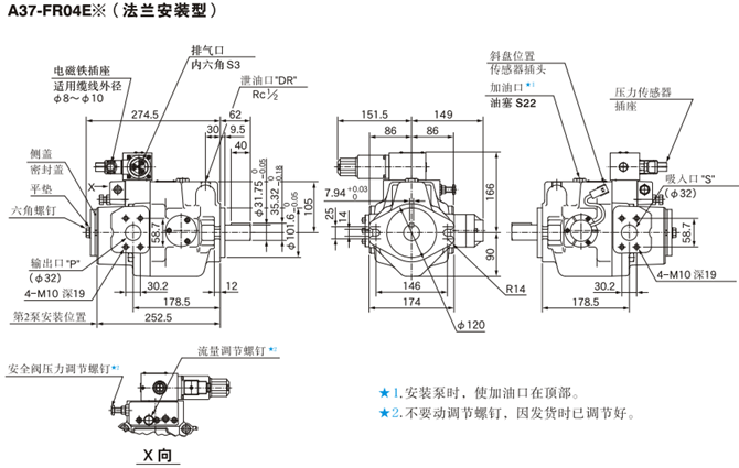 A16-FR04E, A22-FR04E油研柱塞泵安装尺寸: