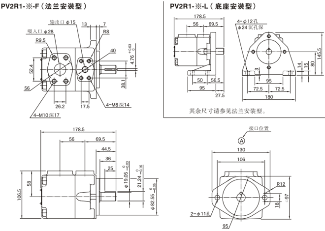 油研PV2R1系列油研叶片泵安装尺寸: