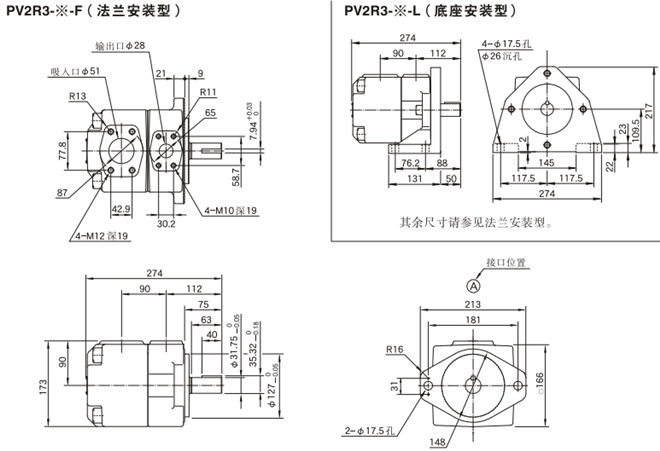 PV2R3系列油研叶片泵型号说明,规格参数及安装尺寸
